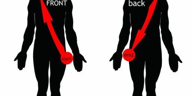 Using webbing or string - place the beginning of the string where you would like to have your radio holster sit. Take other end of the webbing/string across your body, over your shoulder and back to the beginning of the string. This will be your overall length.